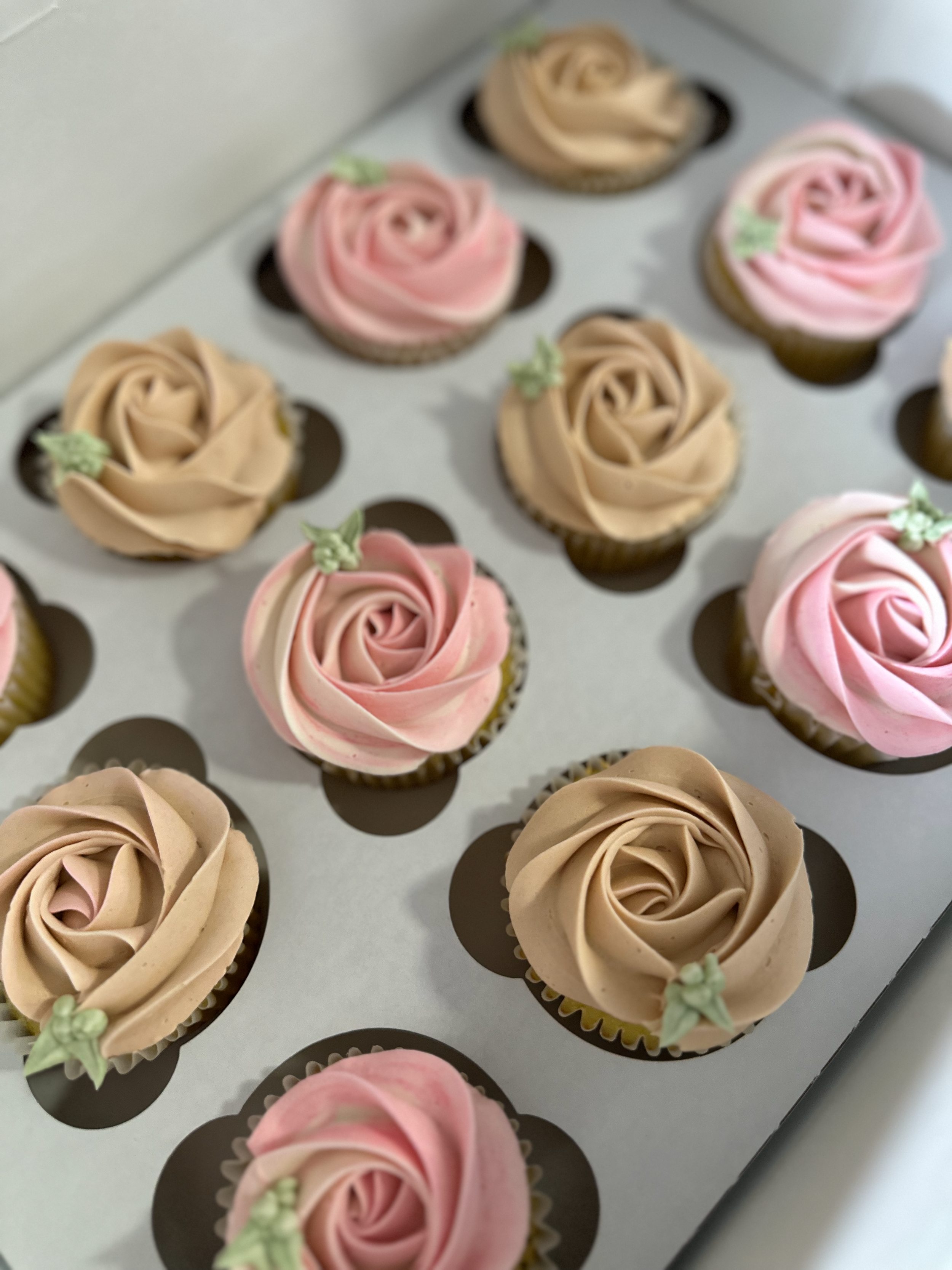 Buttercream flowers or succulents are creatively designed and placed on each cupcake. Each dozen will have a mixture of different types of flowers or succulents unless specifically requested by customers to have one type for the entire dozen. All cupcakes by the dozen can have one flavor per dozen. One dozen is required for regular cupcakes and two dozen for mini cupcakes for a minimum order.